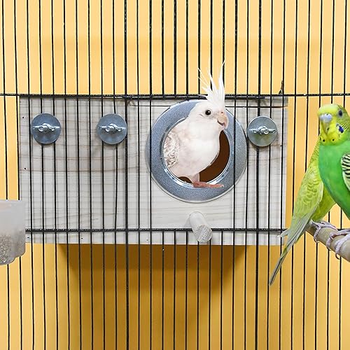 【Natural Pine Material】Our parakeet nesting box is made of pine wood and transparent acrylic, this parrot breeding box is built to endure the elements, offering a safe haven for your avian companions. With a very good heat absorption and cooling effect, the wooden bird hatching box is cool in summer and warm in winter, suitable for all seasons.