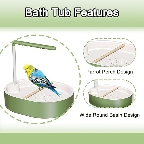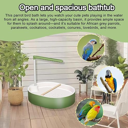 Spacious and Versatile Basin: Designed with a large capacity, the pet bird bath provides ample room for multiple birds to frolic, spread their wings, and groom at once. Suitable for African Grey, Budgie, Cockatoo, Lovebird, and other birds