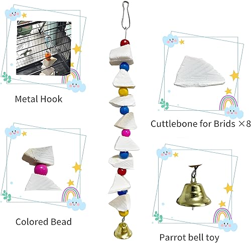 Non-Toxic & Safe Design: Crafted from natural wood, calcium cuttlebone, and non-toxic ABS plastic, these toys are designed to ensure worry-free playtime for your beloved birds