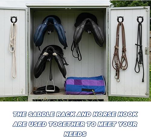 Quality Material: saddle rack and bracket bridle hooks are both made of metal, with good durability and strong load-bearing ability, not easy to bend or deformation; The surface is coated with an anti rust coating, with a beautiful matte black appearance, minimizing rust spots, serviceable for a long time