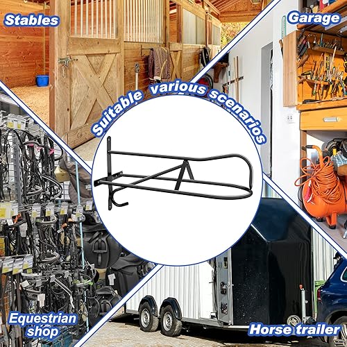 Applicable to Multiple Scenes: the wall mount saddle rack can be applied to horse trailers, barns, porches, utility rooms, etc.; It adopts a simple black design, and its classic appearance can well adapt to most decoration styles, with practicality at the same time