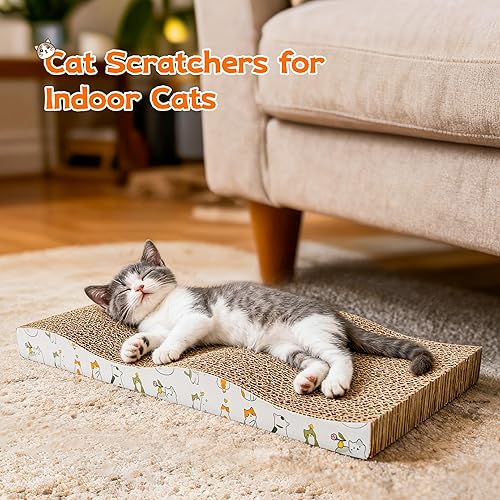 Package include: You will get 4pcs cardboard cat scratchers with a adorable box and 4pcs catnips. You can use catnip to prevent cats from damaging sofas and other furniture. Cat scratchers for indoor cats satisfy cat's habit of scratching to protect furniture.