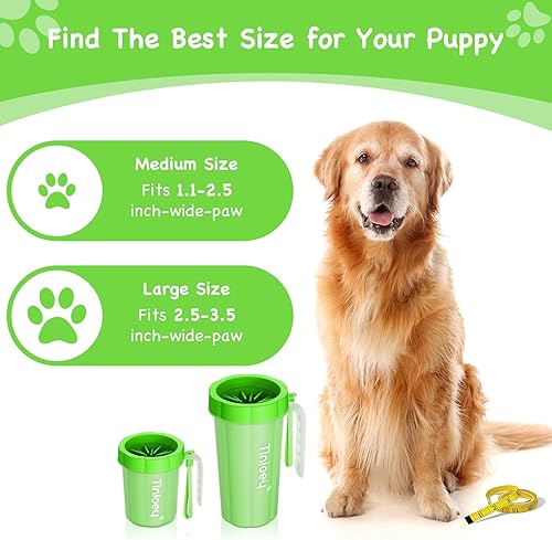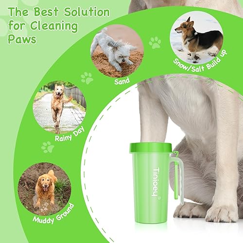 【Efficient Cleaning】Tinioey paw washer for large dogs with handle offers a hassle-free solution for keeping your furry friend's paws clean. The innovative design of large dog feet cleaner ensures thorough cleaning, removing dirt, mud, and other debris quickly and effectively. Compared with some dog paw cleanser foam, it is more suitable for cleaning a lot of mud on dog paws or dog legs on rainy days or after walking the dog outdoors.