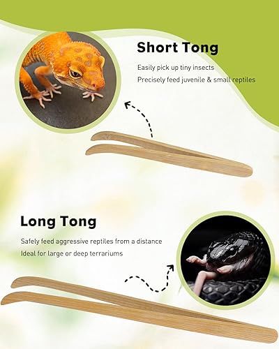Dual Tong Set: Include a 6.5" short tong for picking up insects and close-range feeding in small terrariums – ideal for juvenile and small crawling pets. The 11" long tong lets you safely feed aggressive reptiles from a distance in large or deep tanks