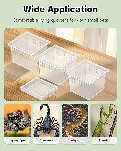 Mini & Portable: Inner Size: 2.3" L x 2.3" W x 1.76" H; Outer Size: 2.8" L x 2.66" W x 1.78" H. Compact spider terrarium fits anywhere in your space while providing comfortable living quarters for your small pets – scorpions, centipedes, mantises, etc.