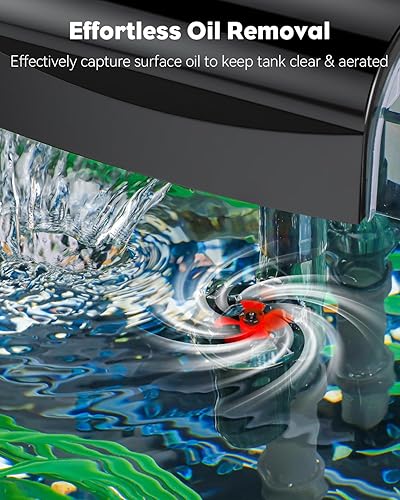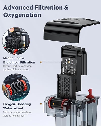 Oxygen-Boosting Water Wheel: Built-in rotating water wheel greatly increases surface agitation, effectively boosting oxygen exchange to increase dissolved oxygen levels. This creates a more vibrant habitat that promotes lively, healthy aquatic pets