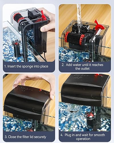 Quiet & Adjustable: With a water wheel to reduce motor noise, it runs silently under 30 dB to keep your tank calm and promote the well-being of fish. The handy rotatable knob lets you easily adjust the water flow to meet the needs of underwater life