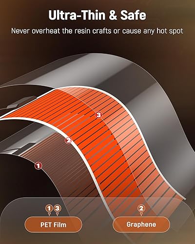 Fast & Even Heating: Power: 40 W. Adopting graphene as its heating material, the resin heating mat features higher thermal conductivity and longer longevity. Quickly and evenly heat up the resin crafts in minutes, reducing bubbles and accelerating curing