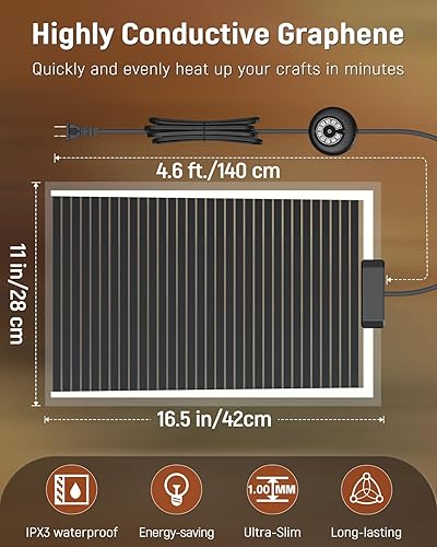 Wide Application: Size: 16.5" L x 11" W. Consistent and stable heat source for making resin crafts like keychains, jewelry or coasters, drying polymer clay creations and so on. Also work great on warming glass or plastic vivaria or reptile tanks