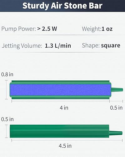 Air Stone Bar: Each airstone measures 4.5" L x 0.8" W x 0.5" T and weighs 1 oz. Well-constructed for continual bubbling. Ideal for small buckets, fish tanks or aquariums.