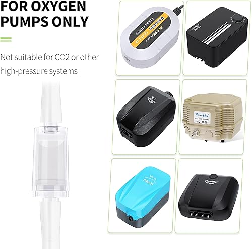For Oxygen Pumps Only: Great 1-way check valve for most common aquarium air pumps. NOT suitable for CO2 or other high-pressure systems to avoid crack and leak.
