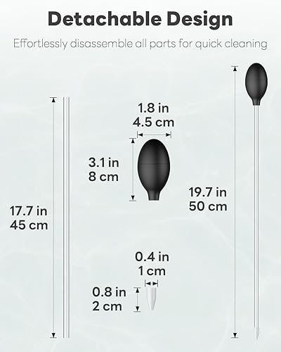 Flexible Rubber Bulb: Soft but strong, the blue squeeze bulb on the top provides great suction. A breeze to draw in and dispense coral food or medication anytime. And it’s detachable for convenient cleaning