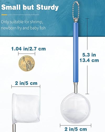 Small Shrimp Net: Diameter: 4"; Pocket depth: 2.6". This aquarium net can effectively catch or scoop shrimps, fry and baby fishes in any fish tank, creek or small pond.