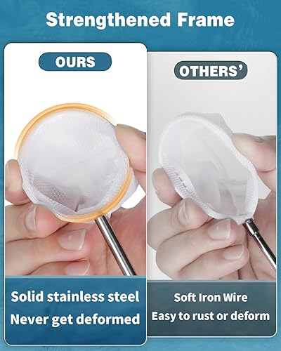 Dependable Material: Both the net rim and the handle are made of sturdy stainless steel. Resistant to rust, bending or deformation. The end of the handle is considerately built with a smooth coating for a comfortable grip.