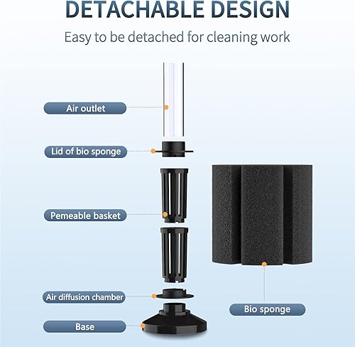 Easy to Clean: The sponge filter can be easily detached for cleaning the dirt. Rinse it every 2 -4 weeks with aquarium water ONLY. Avoid washing it in tap water!