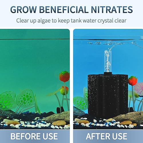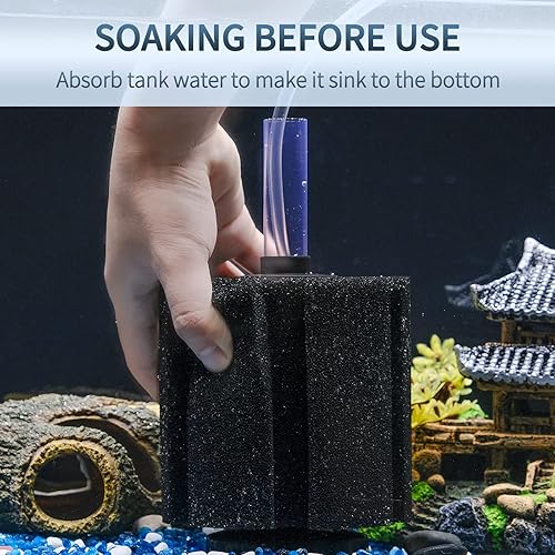 Quiet Aeration: Air powered and causing no disturbance to your daily life. Press the sponge into the tank to fully absorb tank water to make it sink to the bottom.