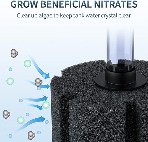 Fine Sponge Filtration: The bio sponge filter provides mechanical and biological filtration and traps debris or waste without sucking up your fish, keeping a crystal clear water tank.
