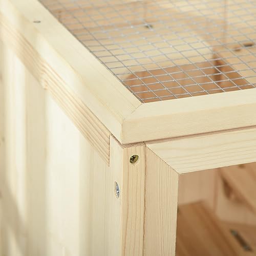 Sturdy Construction: This gerbil cage is constructed of solid and natural fir wood, making the cage durable for long-lasting use. You can use the bottom shelf to place the hamster's food and other supplies.