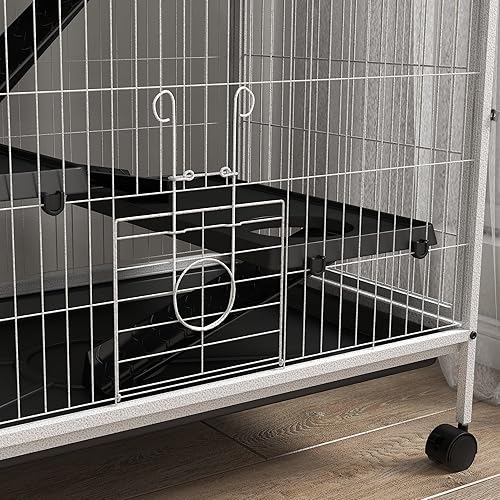 Easy to move: With four smooth-rolling wheels, this rabbit cage glides effortlessly across your home, whether you're chasing sunlight, cleaning up, or simply rearranging. Portability meets convenience for stress-free pet care.