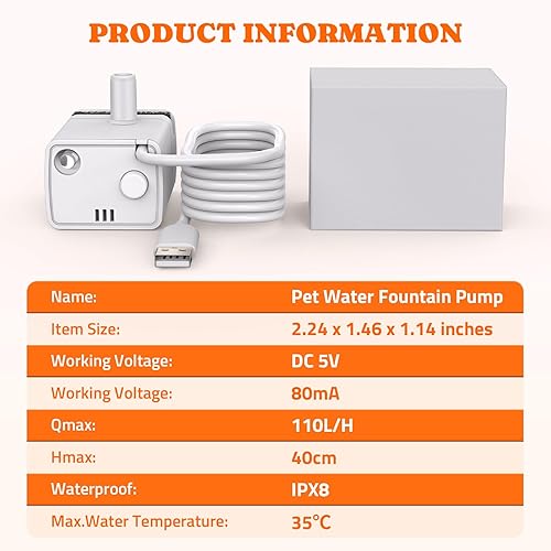 【QUIET】This replacement pump for pet fountain works quietly and the working noise is less than 35dB.