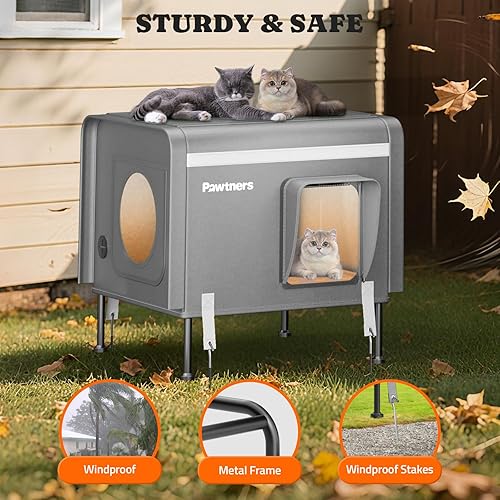 2. All-Metal Frame & Windproof - Durable frame stands strong against snow, rain, hail, and wind. This feral cat house equipped with windproof ground spikes for enhanced stability. Its sturdy construction provides a gentle safe space for stray cats even in harsh weather all winter.