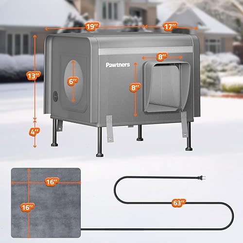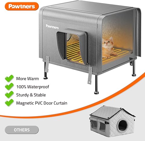 1. Highly Insulation & Fully Waterproof -The thick insulated materials keep the interior of cat house warm. Fully waterproof PVC cover & transparent door curtain effectively prevent rain & snow, featuring a seamless cover with widened edges and extended eaves for enhanced water drainage. This cat house provides a warm and cozy home for outdoor animals(kitten, feral cats, community cats, barn cats and other animals) .
