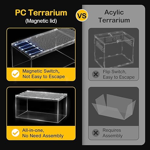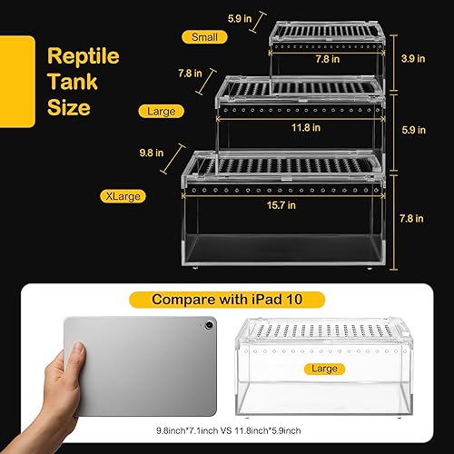 Optimal Ventilation: With numerous ventilation holes on the top and sides, this reptile terrarium kit ensures optimal airflow for your pets.Perfect for housing small reptiles and insects such as chameleons, geckos, tarantulas, and hermit crabs