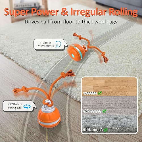 Interactive Dog Toy Keep Dogs Busy: Connect the automatic moving ball with long rope,then activate the ball. Irregular smart rolling with a long rope teaser provides hours of rolling fun,the birds chirping sound will attract your pet's interest, keep your dog entertained. A delicate pumpkin shape design is great as a Halloween holiday gift.