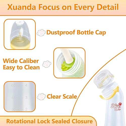 Quality Materials: Xuanda brand nursing bottle are made of high-quality PP material,BPA-free, the cap is well sealed and will not leak, the scale is clear, could better control over the amount of milk, it is heat and cold resistant, so it can be safely stored in the refrigerator or heated.