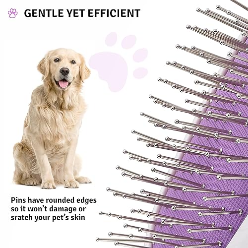 PIN SIDE FOR DETANGLING: One side of the grooming utensil features small metal pins that glide through your pets hair, removing tangles & knots along the way. The padded back makes it a uniquely anti-static pin brush.