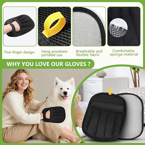 Enhanced Grip & Ergonomic Five-Finger Design: Unlike ordinary pet hair remover gloves, our upgraded version features a secure five-finger electrostatic design with anti-slip functionality. The larger size (9.25" x 6.69") covers more surface area quickly and fits comfortably on all hand shapes.