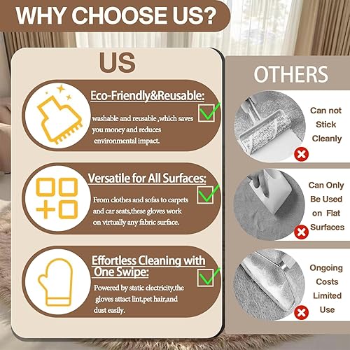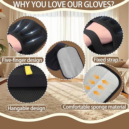 【Upgraded Five-Finger Precision Design】Engineered with flexible conductive fibers, our five-finger electrostatic gloves mold to any contour for targeted hair removal. The articulated finger design reaches deep into sofa seams, car vent slots, curtain pleats, and other trapped-hair zones that flat gloves miss – no rigid claws needed.