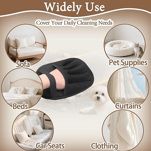 【Electrostatic Hair-Lifting Technology】Experience effortless pet hair removal with our electrostatic pet hair remover glove. The built-in static charge actively attracts and locks cat/dog hair from deep fibers, eliminating the need for sticky rollers or chemical sprays. Works instantly on contact - just glide your hand over surfaces!