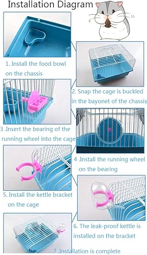- Multifunction design, Comes with a running wheel ,food basin and leakproof water jug,hamster can eat, sleep, play and so on.provide more fun for your pets.