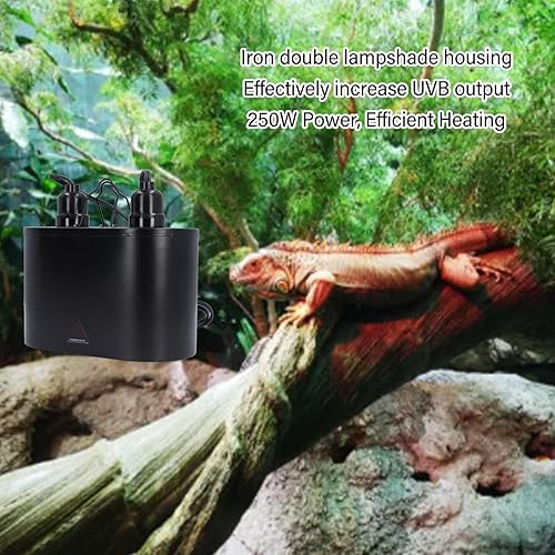 Pet Heat Lamp Dual Lamp Shade Reptile Fixture 250W UVB Heating Light, Iron Material, Ideal for Lizards, Turtles, with E26, E27