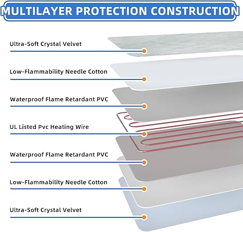 【Safety and Secure Structure】 There are 7-layer protective structure, include refractory thermal wool and UL approved heating wire structure will provide your pet with a gentle warm comfort and protect it from burns.And the soft PVC envelope with waterproof and flame-retardant function. Built-in intelligent temperature sensor in the heating pad to prevent overheating to protect pets.