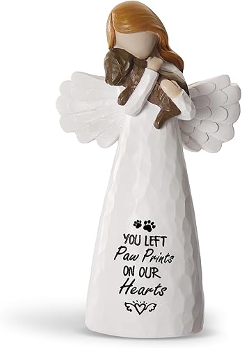 MEMORIAL GIFTS FOR DOGS:Hand-carved angel cradling beloved pet dog,there are touching "You Left Paw Prints on Our Heart" engraved on thea angel figurines. Crafted as dog remembrance gifts offering comfort in times of pet loss. Each piece embodies profound love for departed companions