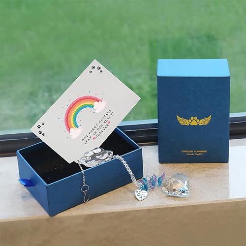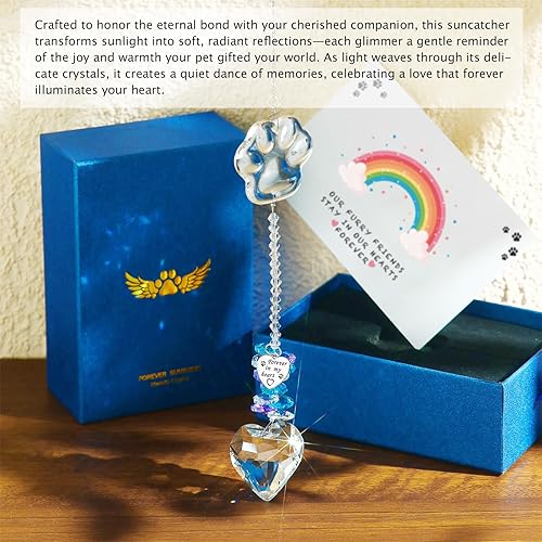 Thoughtful Gift Choice: Delivered in a gift box (6.5 x 4.5 x 2.5 inches) with a sympathy card bearing the heartfelt message, “Our furry friends stay in our hearts forever”. Packaged as a meaningful gift and ready to give, this memorial suncatcher is a heartfelt way to express sympathy to friends or loved ones coping with the loss of a pet.