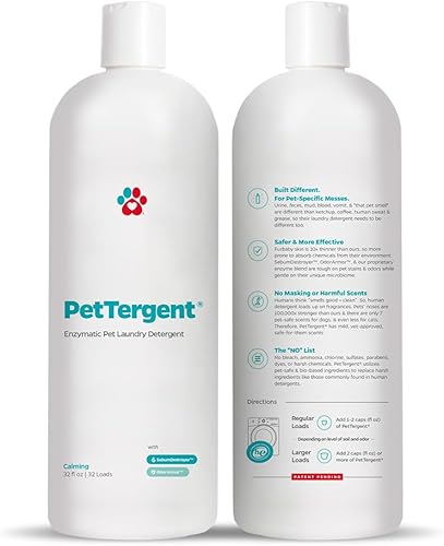 PET ENZYME LAUNDRY DETERGENT: We were tired of turning over laundry labels and finding tons of chemicals, so we did something about it. Human laundry detergents often contain toxic ingredients like bleach, ammonia, & formaldehyde that can be passed to your furbaby by playing or snuggling. Instead, PetTergent, the dog laundry detergent, uses naturally-occurring enzyme blends as a pet stain remover, OdorArmor and SebumDestroyer as pet odor removers, and uses pet-safe & biodegradable surfactants to clean pet laundry