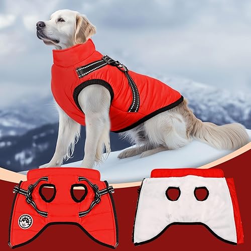 Reflective Dog Winter Jacket with Harness Built in - Reflective harness strap can enhance the pet's visibility in low-light conditions, ensuring safety, especially during outdoor activities or nighttime walks. Dog coat with harness built in makes it easier for owners to dress their pets, reducing the hassle of coordinating outfits. The combined design creates a more cohesive look, making pets appear more stylish and cute, making it an ideal choice for winter walks
