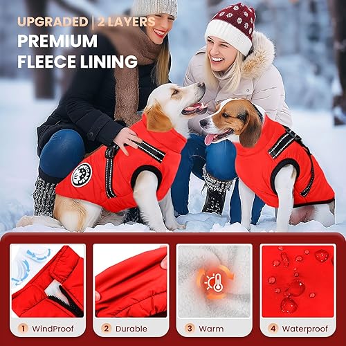 Warm Waterproof WindProof Dog Winter Coat - Winter dog coat features a thickened 2 layers of warm fleece lining, extremely soft and comfortable. The outer layer is made of durable waterproof and windproof fabric. The premium combination of the inner and outer layers ensures fearlessly face the cold winds and snow of winter. Your beloved furry friend is sure to fall in love with this dog jacket, as it is the best winter care you can provide for your pet