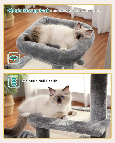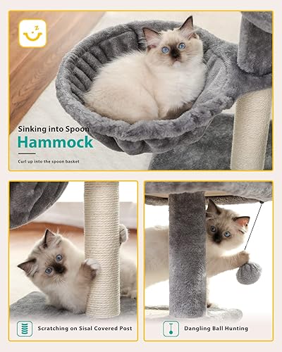 Sisal Scratching Ramp: PETEPELA cat tree for small cats features a sisal scratching ramp, perfect for satisfying cat's scratching instincts and helping to keep their claws healthy and sharp, while also add stability to the cat tower tree structure