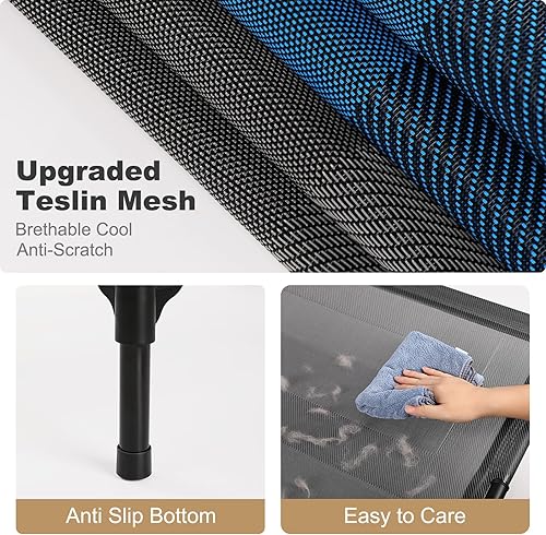[Breathable and Cool] Made with breathable Teslin fabric, this outdoor dog bed promotes air circulation, keeping your pet cool and comfortable even on hot days. The material is also highly durable and resistant to wear, ensuring long-lasting use.