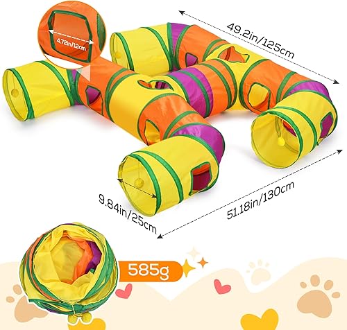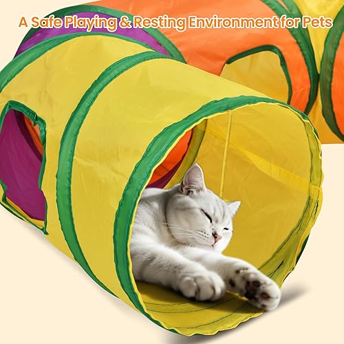 Best Toys for Pets: PETIZER Cat Tunnel is designed to be H-Shaped with 3 spacious tunnels, 10 peepholes & 4 playing balls. Cats can hide, sleep or play seek games in it. This tunnel is a really versatile and funny indoor toy that helps your cats reduce boredom and keep active. It can also be used for puppies, rabbits, or other small animals. Its vibrant colors are not only visually appealing but also help to stimulate your pet's senses, keeping them engaged and mentally sharp.