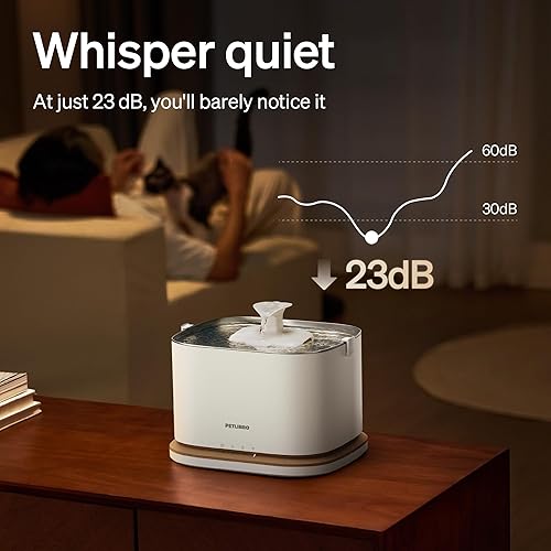 Pet-Proof & Peaceful: PETLIBRO cat fountains for drinking is engineered with a stable, anti-tip design to withstand playful paws. This stainless cat water fountain's whisper-silent operation ensures it won't disturb you or your pet, making it perfect for any room, even the bedroom.
