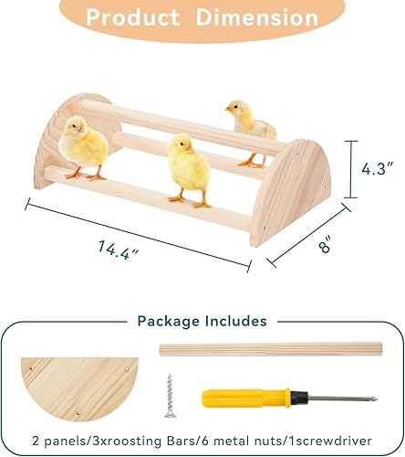 Compatibility:Our wooden chicken roosting bars fit various products like chicken coops,bird cages,playpens,and soft-sided crates.This mini chick gym is safe for humans,animals, and plants