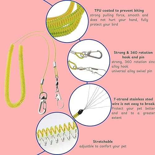 Comfortable and safe: Soft, breathable, safe cotton material and adjustable velcro design make your bird feel comfortable when wearing bird diaper, cockatiel diaper, even when very active. Elastic shoulder straps, easy to adjust, let your pet cockatiel, budgie, duckling, parakeet move freely. Comes with a sturdy, elastic bird leash, make it easy for training and control your bird. The bird harness with convenient 360-degree rotating hook buckle, let your pet bird fly freely