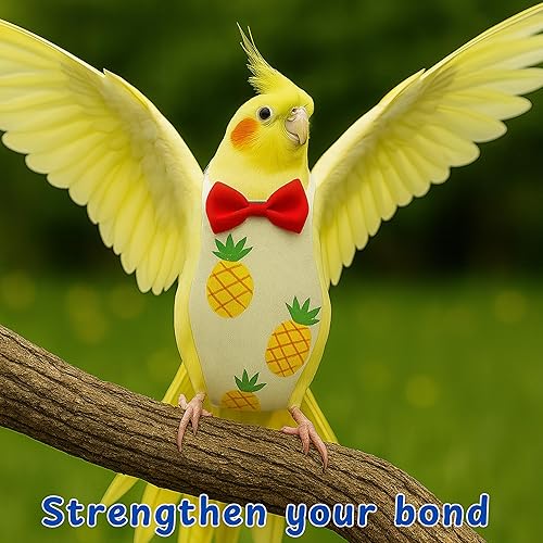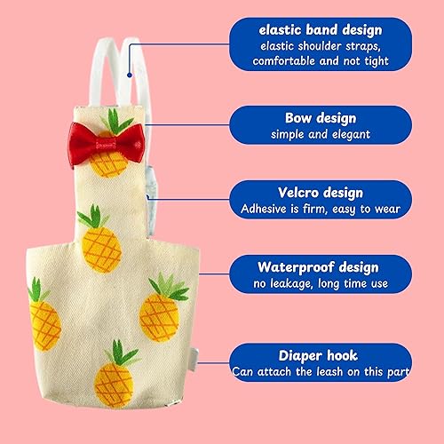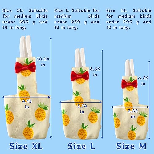 Fashionable, cute and convenient to use: Unique pineapple design, red bow tie and bright yellow leashes, make your bird, chick, baby rooster, conures, silkies stand out and adorable. The mini liner pad is easy to put on and take off, just adjust the velcro and straps, with a large tails hole to prevent the bird from being constrained. The waterproof liners pads easy to clean and washable. Let your bird explore the world with our bird diapers for birds and bird leash for african grey products