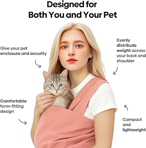 【Compact and Lightweight】Weighing only 0.4 kg (0.88 lbs), our pet sling carrier for cat and small dog is compact and easy to carry on walks or trips. You can even wear it underneath your coat during colder weather, and it's easy to care and clean, you can wash the small dog sling carrier in the washing machine.