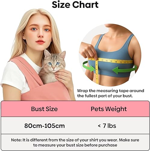 【Stylish and Practical】Designed for women whose bust size range 80-105 cm (31-41 inches), the pink color of this puppy sling gives a stylish touch to functionality. Please remember to check the size chart before purchase. And please ensure to measure your pet's weight before purchase to enjoy the comfort of this wearable cat swaddle carrier for chest.